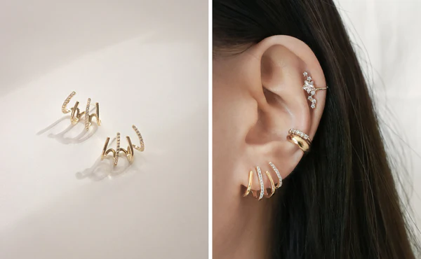 My experience: I have multiple ear piercings. The biggest trend in 2025 is mix-and-match stacking . I put a small hoop in my main hole and an ear cuff or star stud in the upper piercing . This look is very young and trendy.