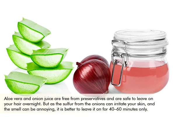 - Apply fresh aloe vera gel directly on the scalp and wash it off after 30 minutes.