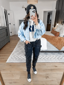 I once attended a friend’s birthday brunch. I wore a white hoodie, high-waisted jeans, and the front of the hoodie was slightly tucked in. I topped it off with a crossbody bag and a sleek bun—simple yet chic! I felt ready without much effort.