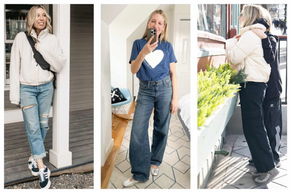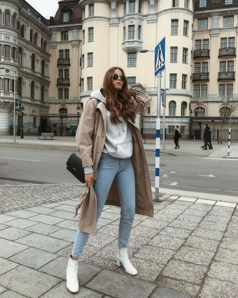 The safest option with a hoodie is white sneakers —both comfortable and stylish. But sometimes I’ve paired a hoodie with ankle boots , and it has a different vibe—a little edgy and confident.